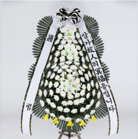 장례식장, 부의, 추모, 영결식장에 조의를 표하는 상품입니다. 3단 기본 화환입니다. 가장 많이 주문되는 모델입니다. 저희 화환은 모두 정품으로 제작합니다
